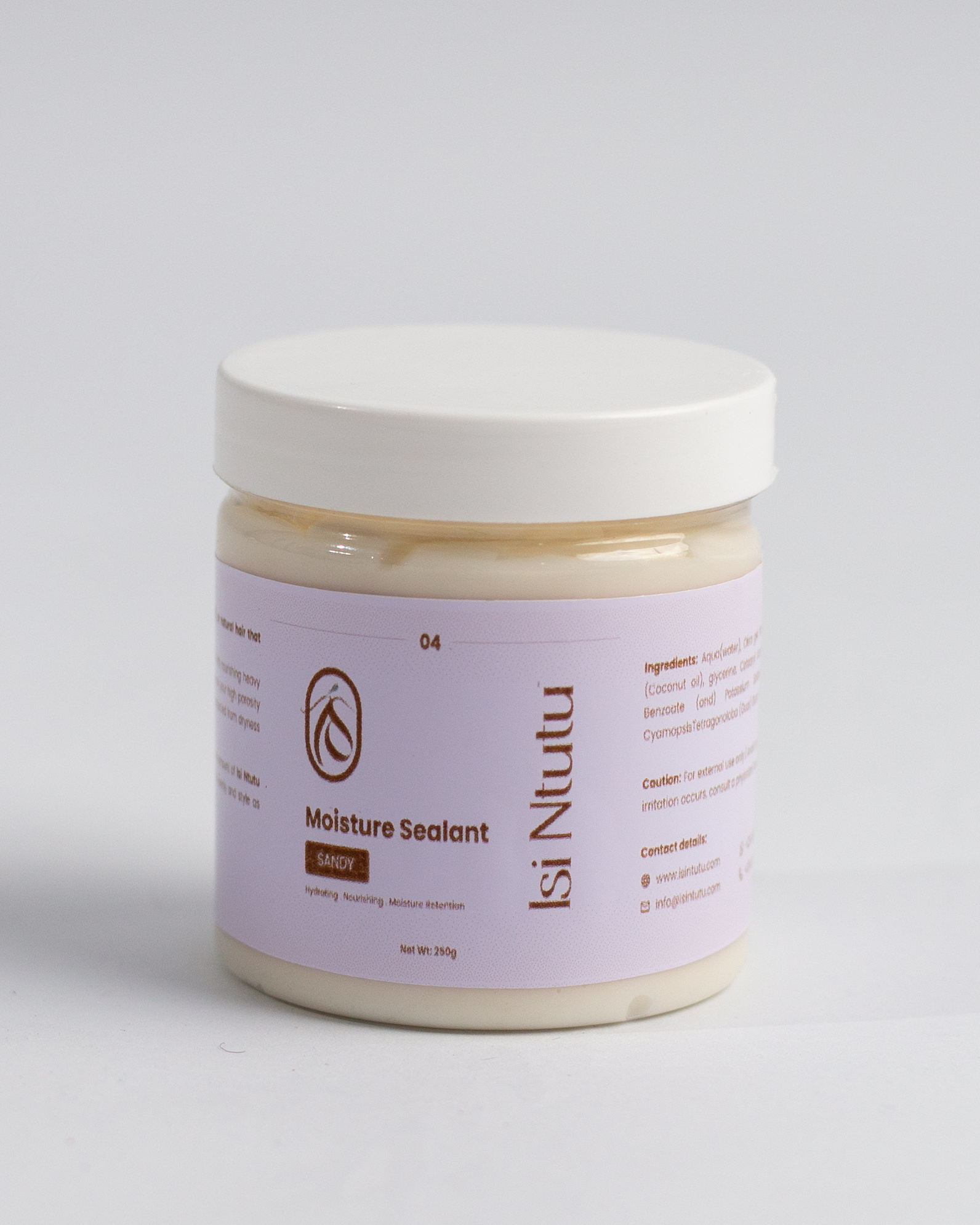 How to use: After using Isi Ntutu leave-in conditioner, apply a generous amount of Isi Ntutu moisture sealant to hair strands from roots to ends. Work through hair evenly and style as desired